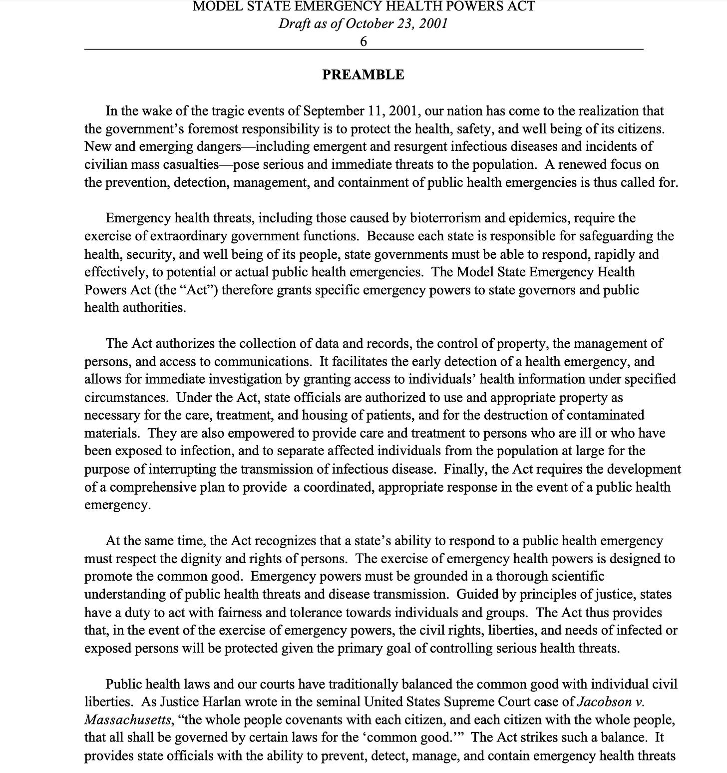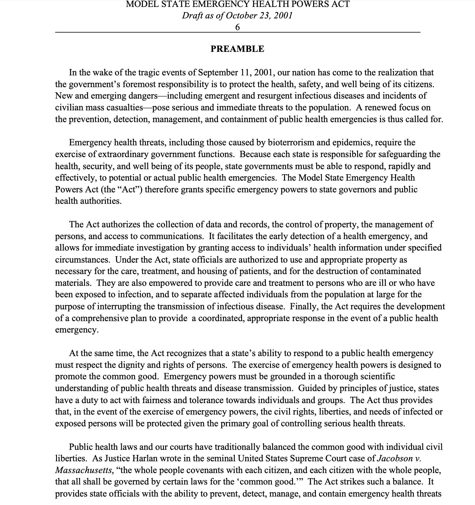 Let’s start with the Model State Emergency Health Powers Act. It was drafted in the wake of…wait for it… 9/11.