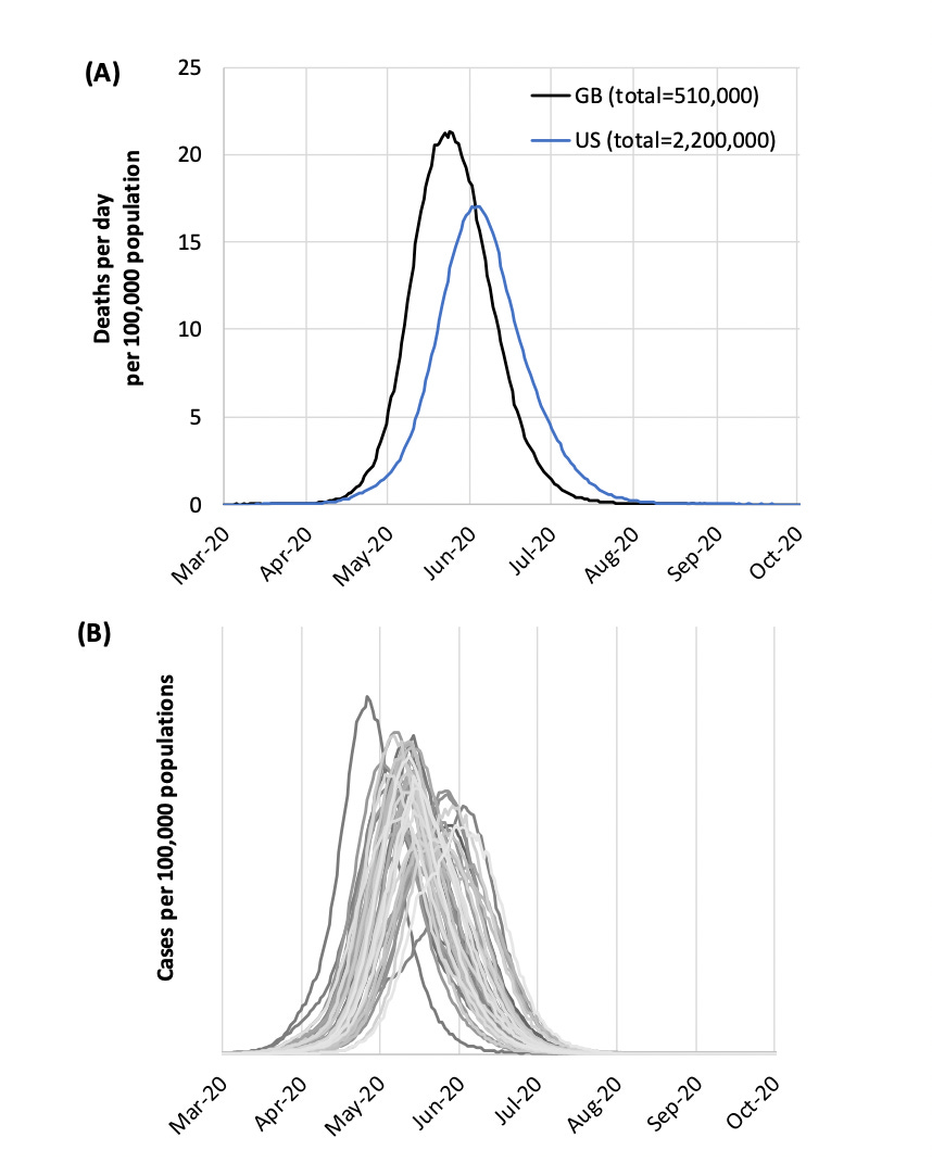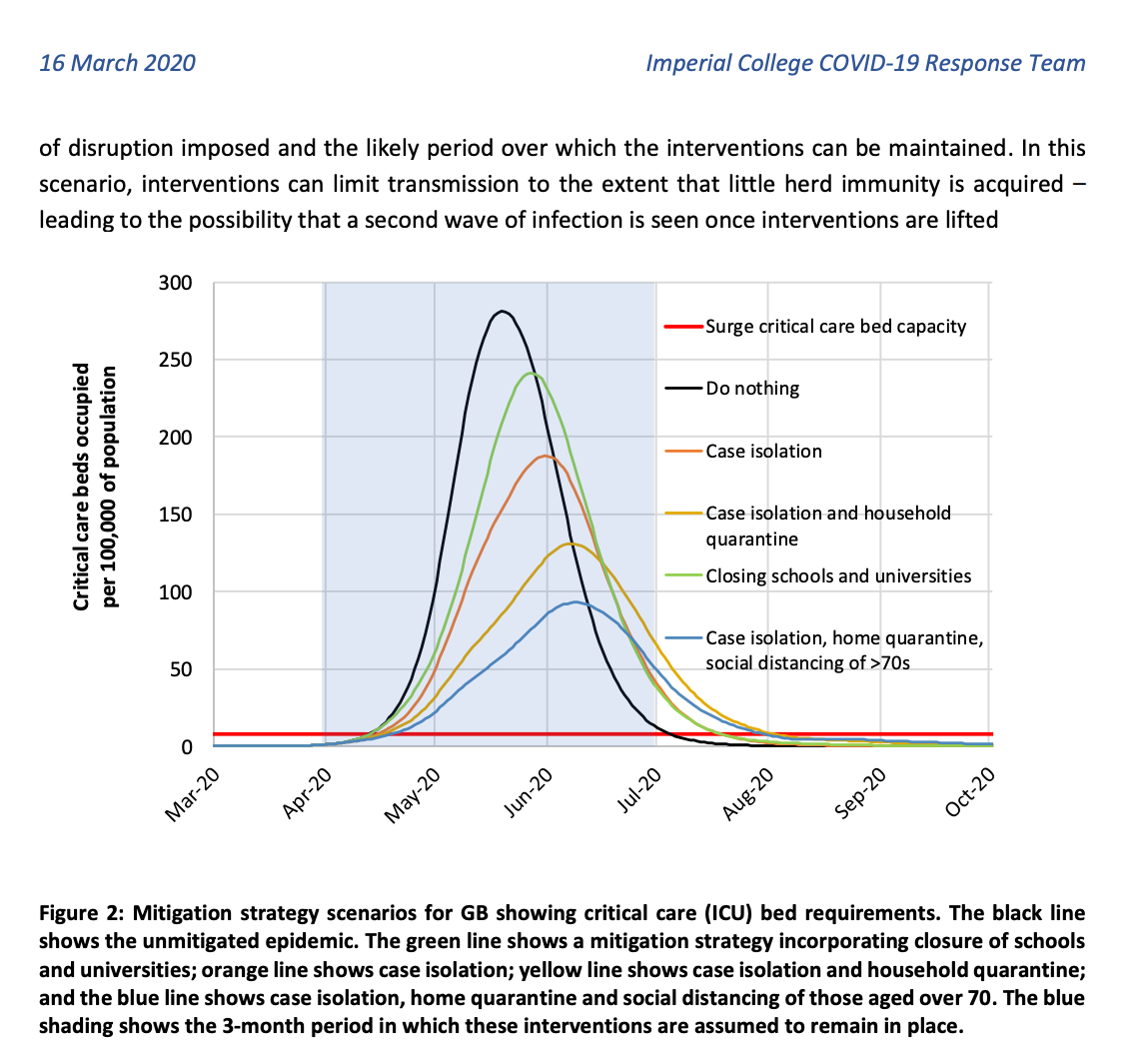 This is some early modeling bullshit a graph from the Imperial College, projecting the death and destruction of Covid-19 that helped shut down the world.