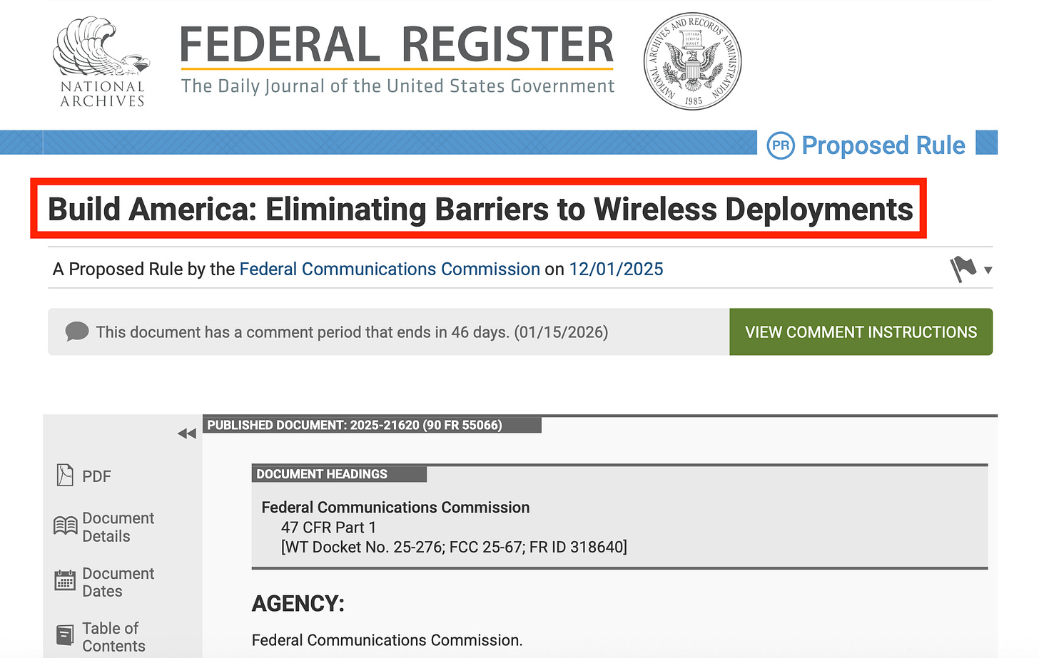 FCC (12/01/2025): "Build America: Eliminating Barriers to Wireless Deployments"