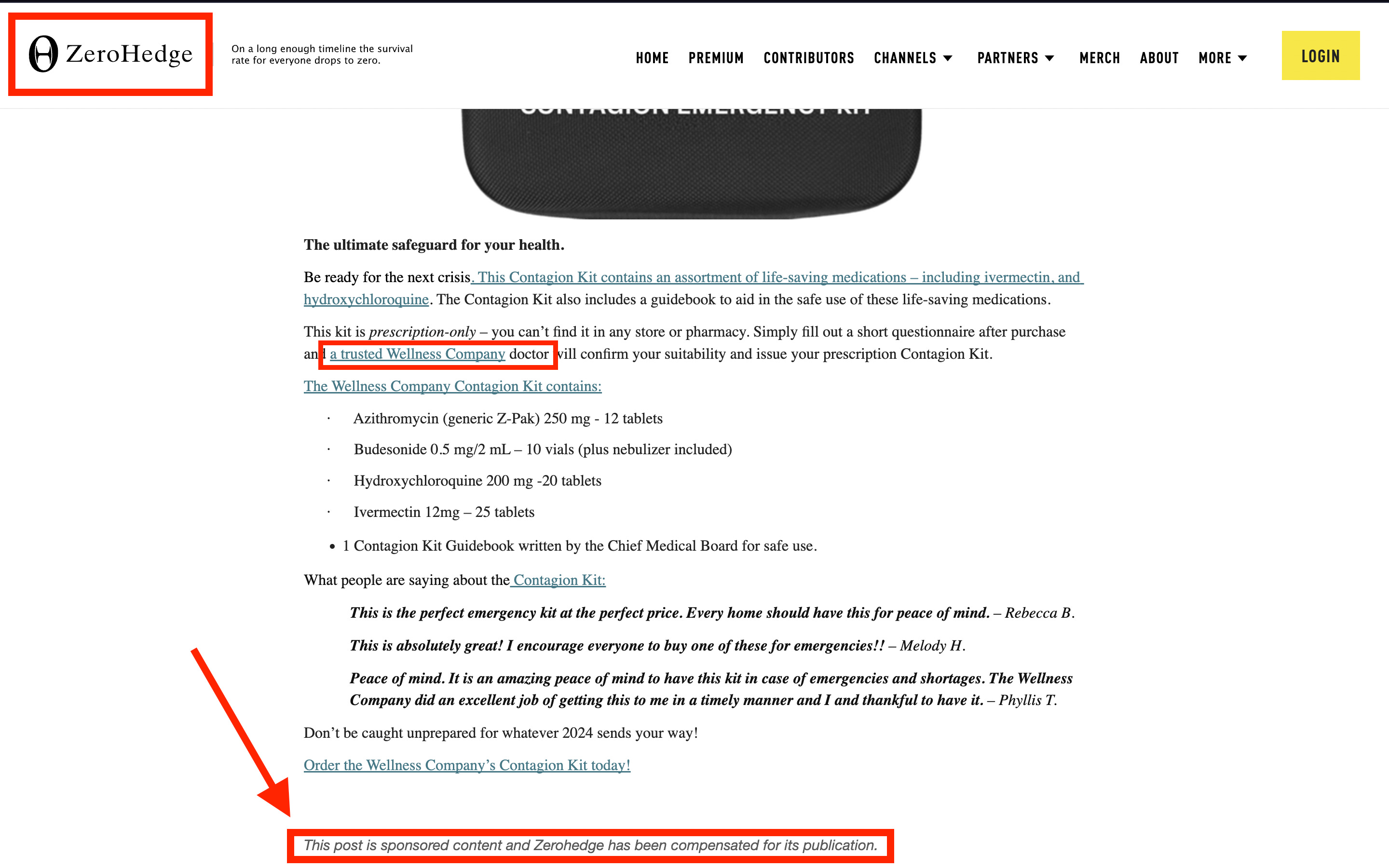 See that little bit at the VERY bottom ↑? That means Zerohedge is getting PAID to promote The Wellness Company.