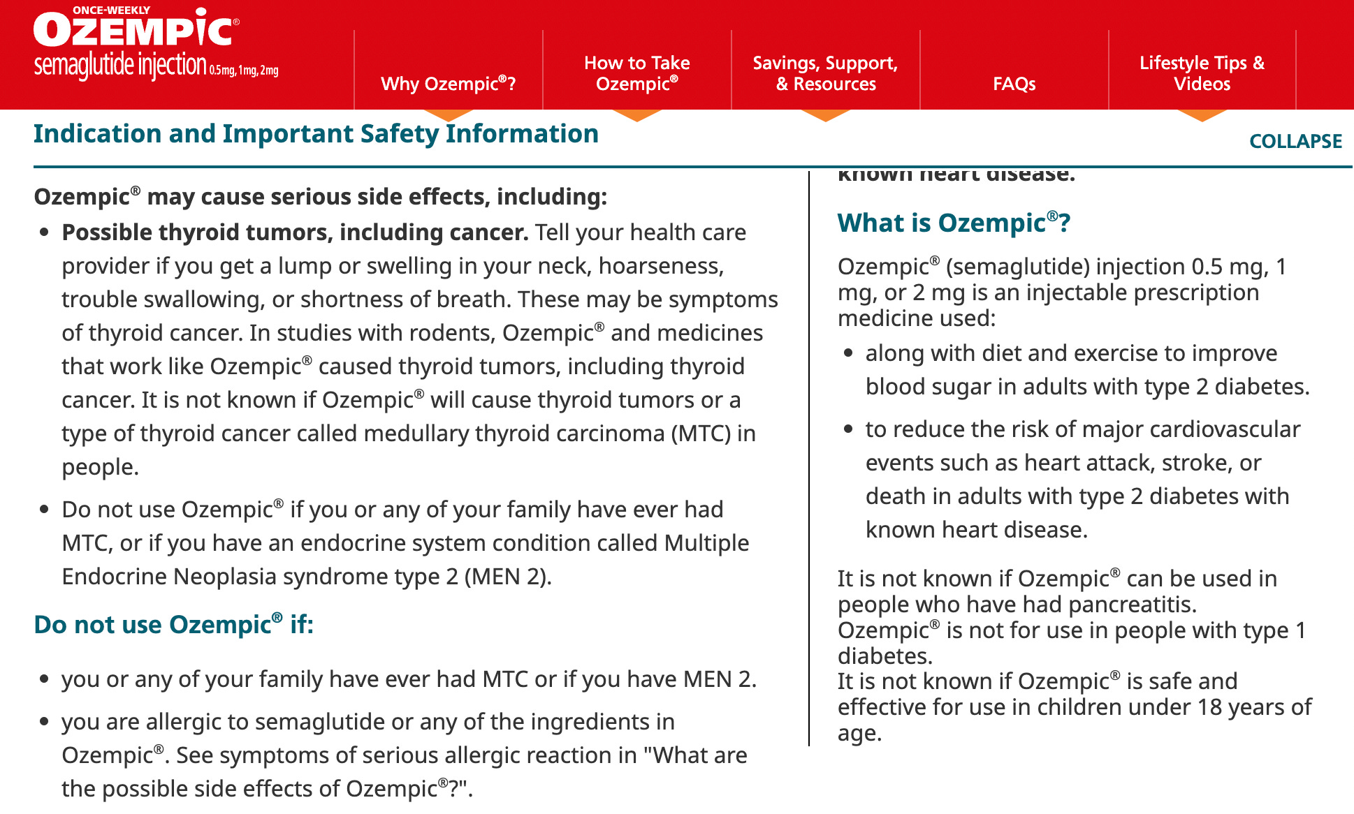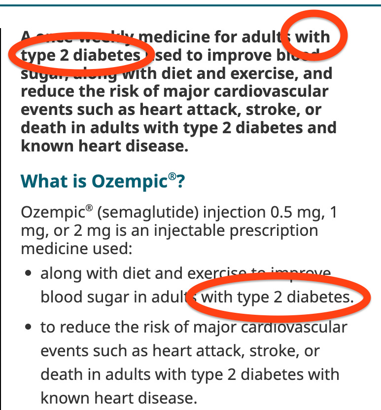 I saw not one single place on the website that promoted using Ozempic for dropping a few pounds. And I looked.