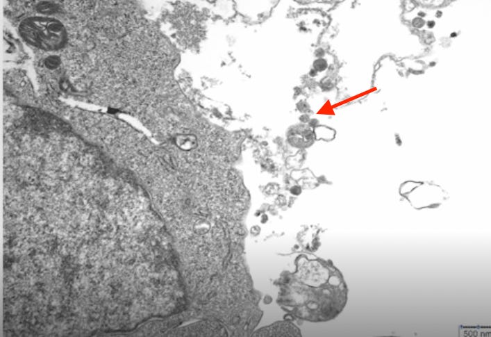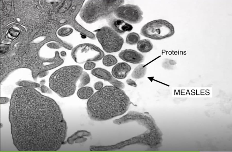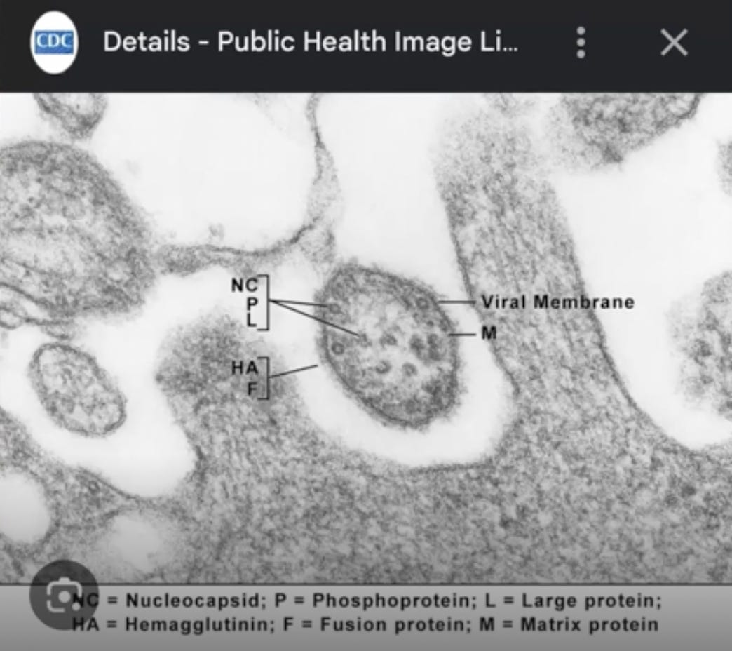 👇 Now a picture from Andrews’s cell culture. You’ll see incredibly similar artifacts to the CDC’s purported “measles virus”. It is almost identical in shape and measuring exactly the same size at 250nm.