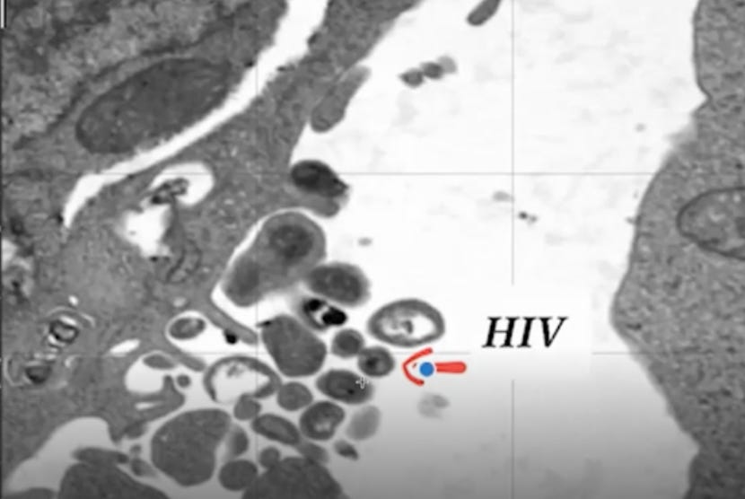 👇 CDC’s photo of HIV, measuring 80-110nm in size.