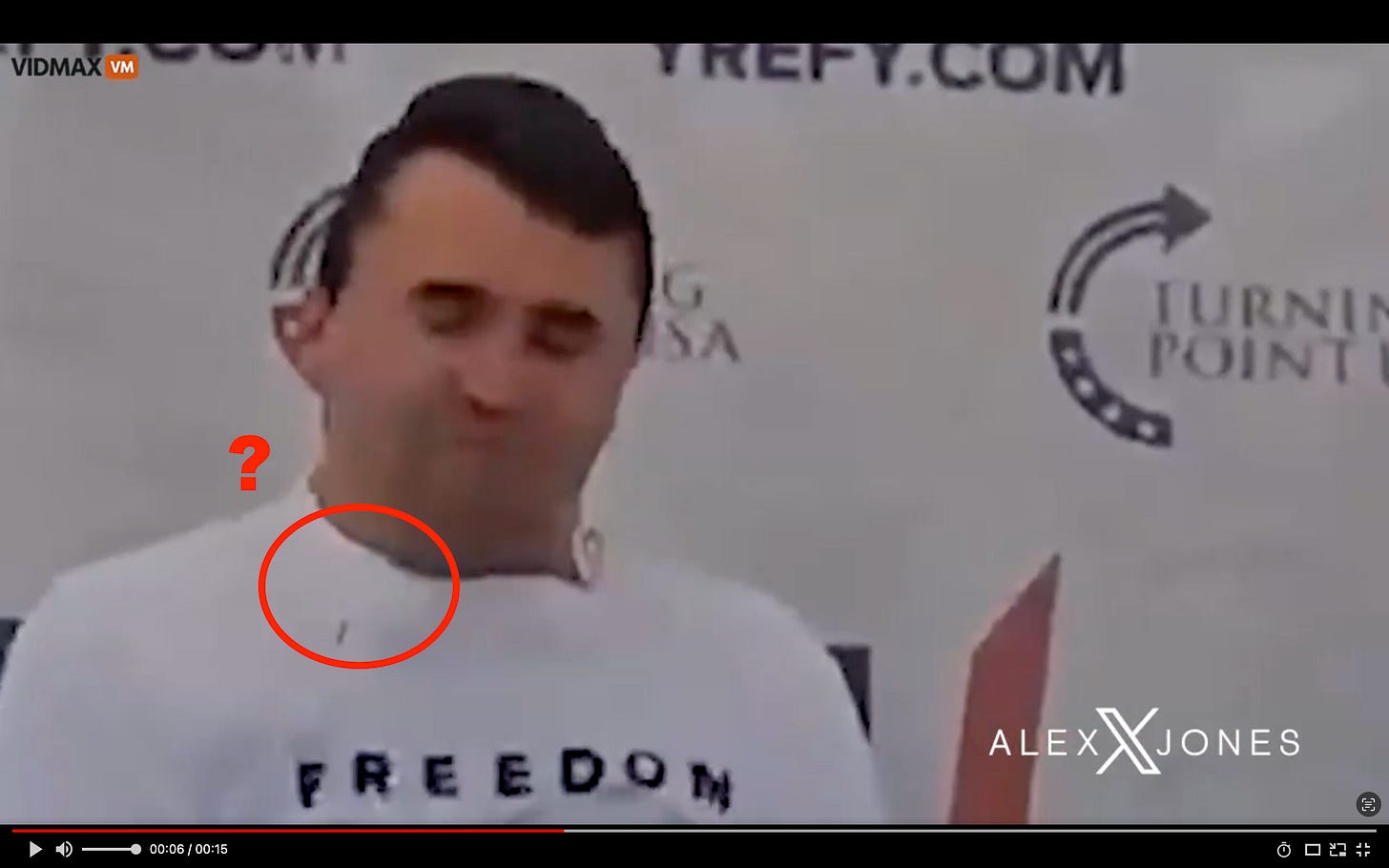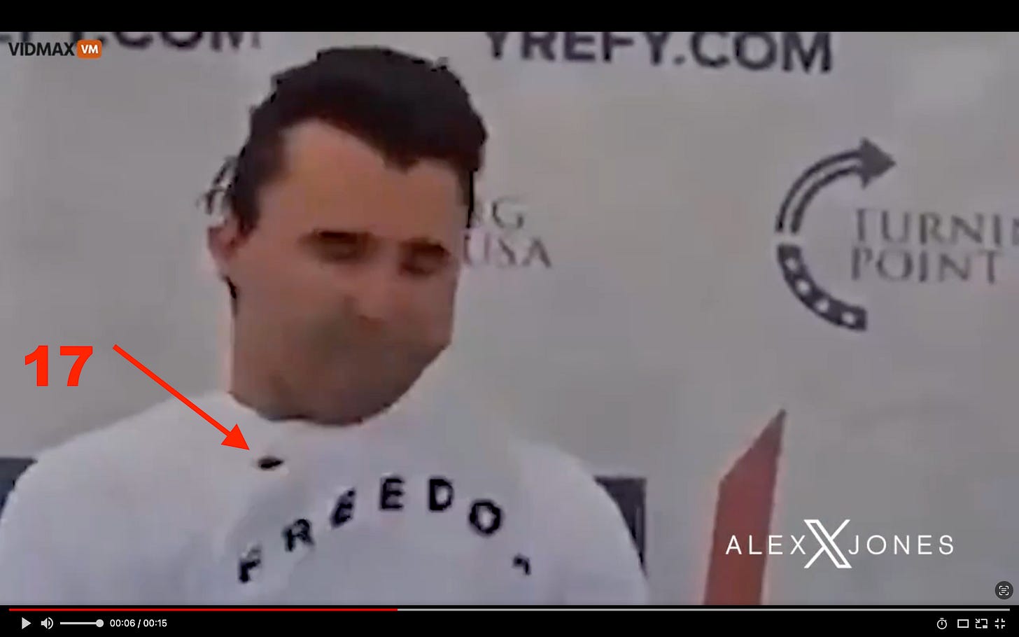 Also the t shirt doesn't even soak up the blood, the missing exit wound/blood. And that guy in black who tapped his shoulder behind him was also at Trump's fake ass assassination.