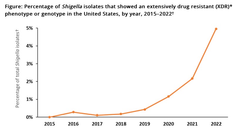 Ladies and gentlemen the latest CDC health advisory is warning about a sharp rise in serious gastrointestinal infections caused by the drug-resistant bacteria, Shigella. It sounds like MonkeyPox 2.0 - it's an STD affecting mostly gay men.